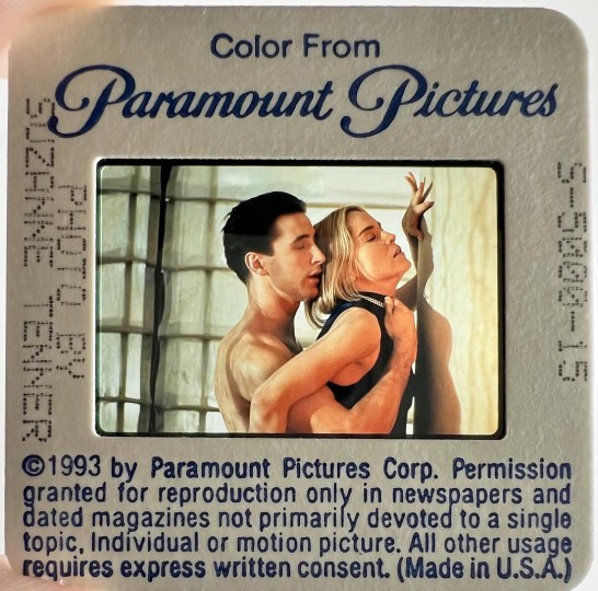 这套派拉蒙影业发行的《偷窥》(1993)媒体套装是我早期的收藏,它很少见,可能全球就此一份。它包括:彩色海报封面文件夹、电影资料册子、8x10 英寸银盐光面黑白相片、一版彩色幻灯片;以上已经很难收齐,但套装里还包括一份派拉蒙内部信件(图3)——这是个很少见也很有意思的补件说明,日期是 1993 年 5 月 13 日,内容是让媒体把之前发的套装中某一张剧照替换成新寄出的这张,牛皮筋里箍着几十张一模一样的黑白照片。对于收藏家来说,这种“未分发的整叠重复剧照”说明它是直接来自宣传部门的原始套件,没有被拆分使用过,完整度极高;而且它应证了以往电影发行与媒体编辑工作的一些专业环节,具有更多的文献价值。我们在纽约的俱乐部有位小姐姐想收藏这几十张照片中的一两张,开价还很大方,我想想后还是没有给她,我觉得这叠重复的照片最好不要拆开,因为这是它的历史状态,当然她也很理解!