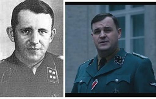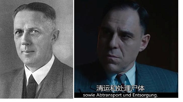 约瑟夫·布勒 (Josef Bühler, 1904–1948) -- 左为真人,右为电影剧照