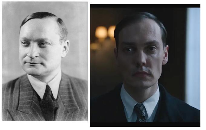 海因里希·穆勒 (Heinrich Müller, 1900–失踪) -- 左为真人,右为电影剧照