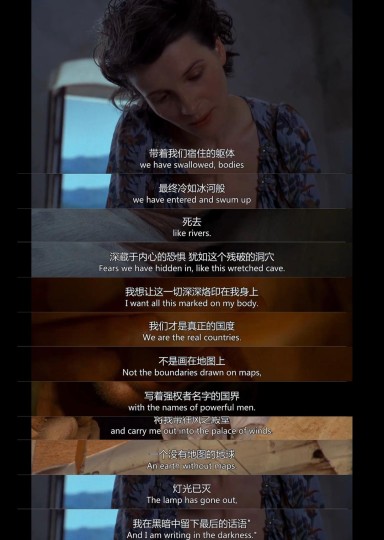 他们互问最讨厌的事是什么?凯瑟琳说是lie.电影开始不久他们两个困在沙漠中聊天的时候女主讲到杰弗里就说了:He lied.男主说是own and be owned.这里不仅是指爱情中的占用欲,实际暗指着对事物的占有和被占有,就像欧洲列强对非洲的占有和非洲毫无选择地不得不被占有。 电影中其实前后处处都有照应的。 另外挑两处刺: 护士汉娜与KIP的爱情来的有些牵强,有拉郎配的即视感。不是对印度人有什么偏见,而是情节有点儿撑不起来他们的爱情。点火把看壁画也没演出来浪漫感,虽然壁画很惊艳。男演员一副面无表情的样子太愣了。 女主在飞机失事后的状态演得太假了。说话中气十足的,呼吸平稳,一点也觉不出是肋骨折了,脚踝断了,身受重伤濒临死亡的状态。