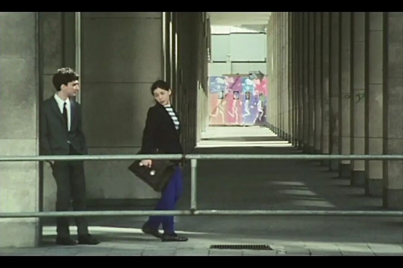 但在《空白页》中,羞辱与控制不再停驻于符号、数字的涂鸦画,叠印的画面由课桌替换为进行秘密交易的手。它与店内克里斯汀被控制的身体瞬间并列、重叠,一次个人的失败被赶向群体的流动,并招致视线的颠覆(我们再也无法在店门外安全地看着暴力实施):这出滑稽秀是从舞台的顶棚向下看的,镜头见证一张唱片经过许多只手的流转。拟吻的缺席被用手的循环来代替,课桌表面的图像被一个被加速的亲密序列接替。这本应改变不了任何的成人世界逻辑,教授《忏悔录》的老师仍会拆穿魔术表演,愤怒地把基尔轰出教室。但阿萨亚斯把被羞辱的情感抄写为可以传递的故事,当然有理由相信,当基尔离开校园在夜里骑着单车,他不再盯着手里的词典,而是在雾中误入皮亚拉的剧组,看见《毕业优先》里三对青年拥吻,另一边,克里斯汀身处一场派对中,那里正放着基尔偷来的唱片。