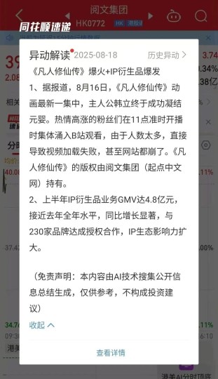 可以说,只有想不到的,没有做不到的。8月18日,阅文集团的股票在刚刚过去的周末韩立结婴的影响下暴涨,那是大家看到了IP的潜力和价值。