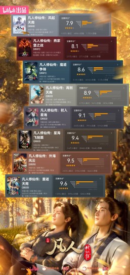 正是基于这种“陪伴式”的IP运营理念,《凡⼈修仙传》动画交出了⼀份惊⼈的成绩单: