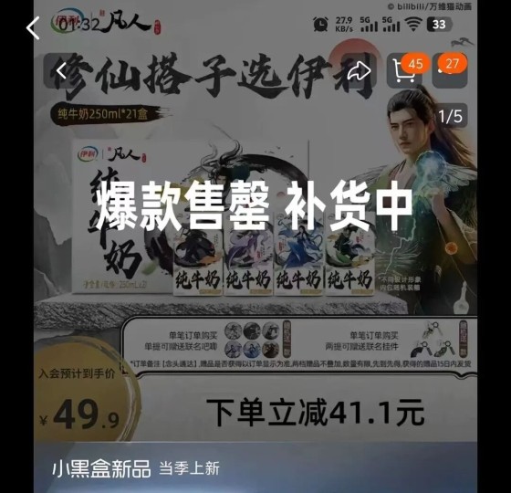 △ 《凡人修仙传》动画与伊利联名款纯牛奶