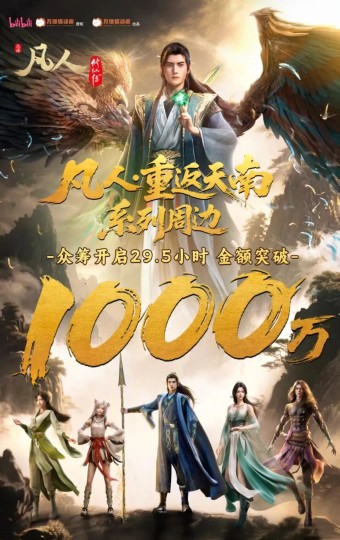 这份滚烫的热情也直接转化为商业价值,伴随《凡⼈修仙传:重返天南》上线的系列衍⽣品众筹,在29.5小时内金额突破千万,仅在B站会员购单⼀渠道销售额就突破了2800万元。