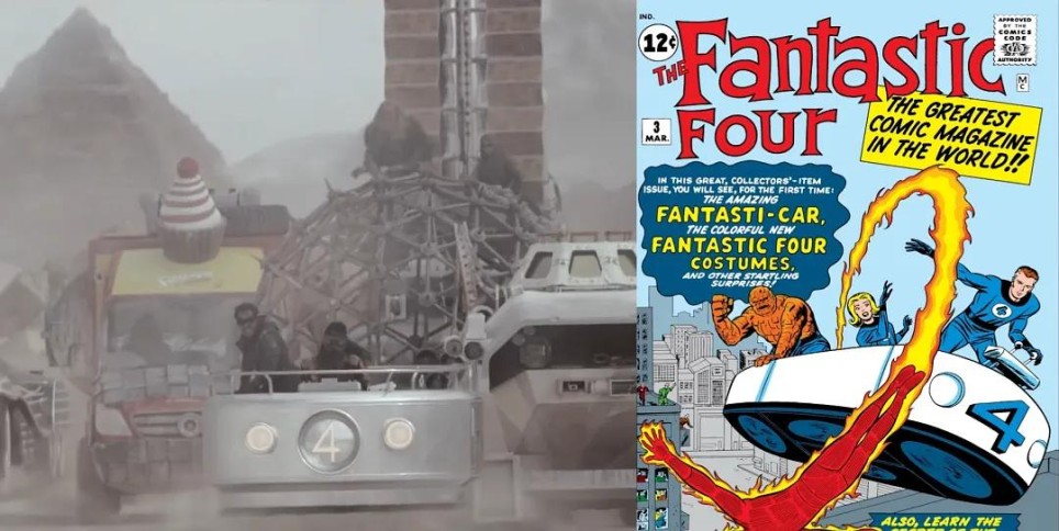 《死侍与金刚狼》也曾出现神奇车,还原了《神奇四侠》第3期被粉丝戏称为"浴缸"的初代设计。