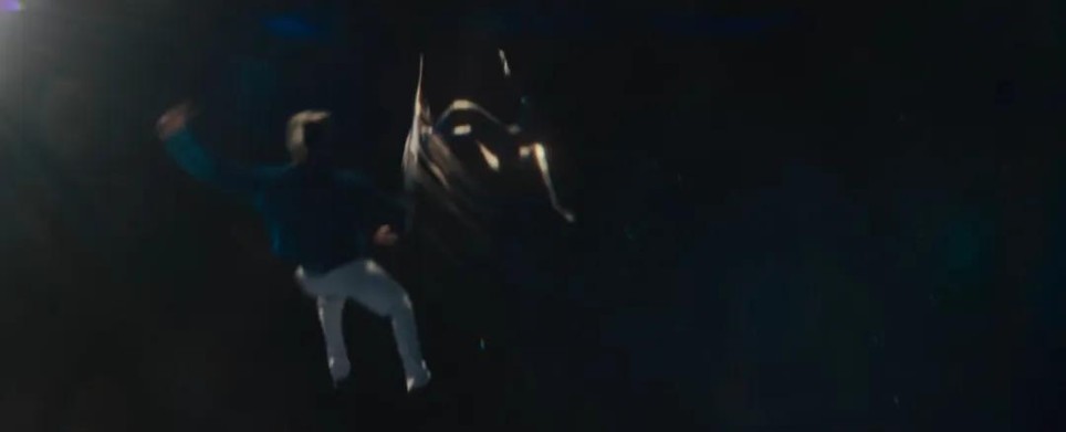 画面切至太空舱坠海现场,石头人用岩石拳头击开舱门。