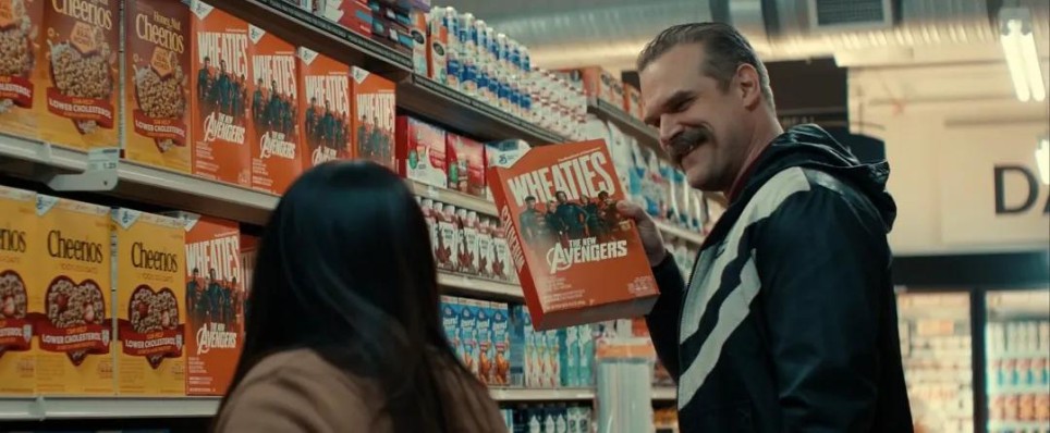 妇人用Wheaties麦片盒做女巫帽,雷霆特攻队曾代言这款麦片。