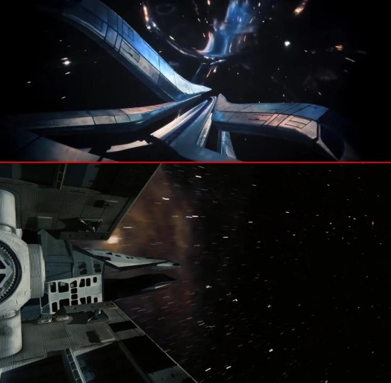 超光速引擎设计明显受到《星际穿越》永恒号的启发,影片沿用了永恒号标志性的侧置摄像机视角,而中子星的引力透镜效应正是基于《星际穿越》团队的黑洞模型。