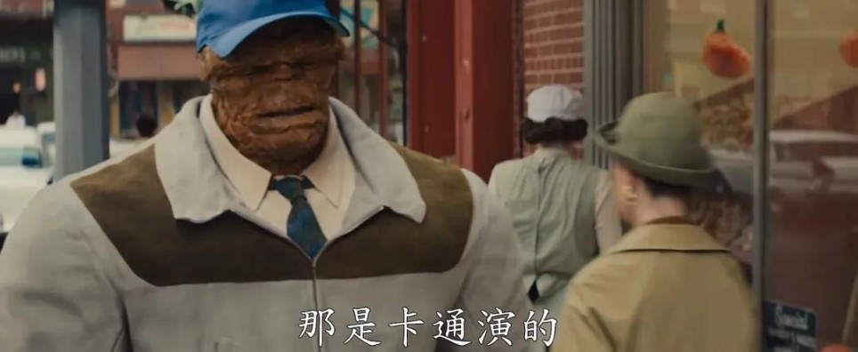 小朋友观看《神奇四侠》动画片的场景,在后续剧情中得到呼应,当石头人和路人对话时,他说的正是这部动画。