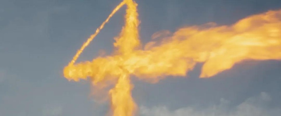 他用火柱拼出"4"字,不仅还原漫画,也是2005版《神奇四侠》霹雳火的招牌招式。