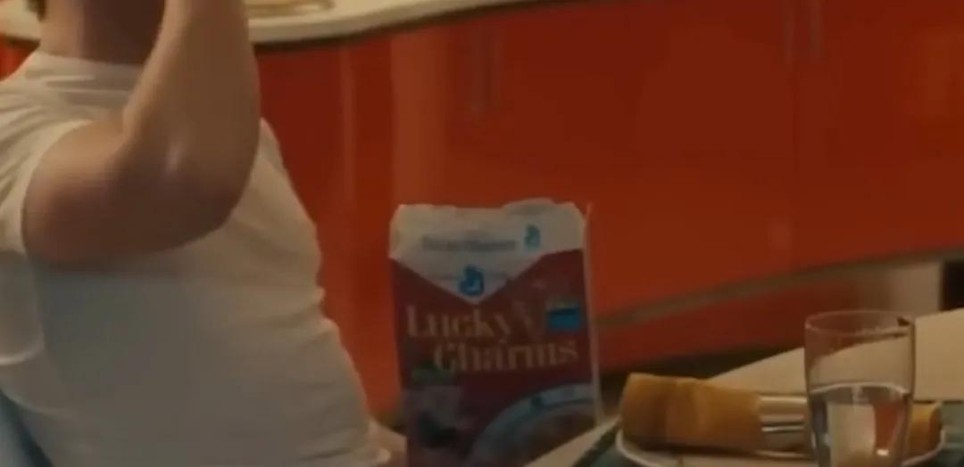 旁边是真实存在的Lucky Charms麦片,由霹雳火代言。