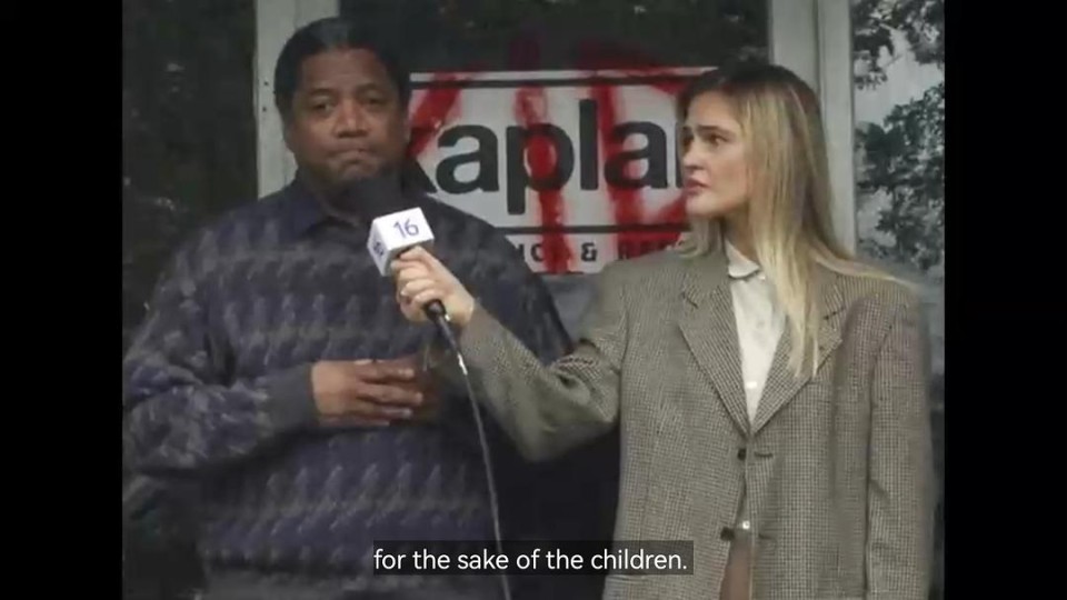 在开播前我就已经瞄到数十条电影节影评一同赞赏这个片段的黑暗之处,虽然已经被剧透到了凶手并不是一水的超自然实体而是杀手。和去年的V/H/S/85一样,Carl Garrison是第一个被官宣成为致命录像带的演员也是凶手,这个故事非常黑暗我喜欢。 众所周知80年代最热门的《月光光心慌慌》《13号星期五》给那个年代的人们带来了一个血浆遍地的杀手年代,各家各户就如同本篇故事kidprint里,一个小镇上儿童接连不断神秘失踪案件一样搞得人心惶惶。 老板Tim Kaplan所在的卡普兰电器,在万圣节到来之际在给镇上的儿童录制影像,由于最近的儿童失踪事件越来越频繁。以免当孩子失踪时无证照无来源无线索。但很快这些好意录制的影像将成为整个黑暗事件的中心。