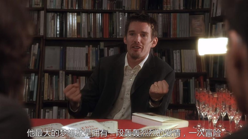 爱情。 80分钟的电影,篇幅很短,故事发生的时间也只不过是日落之前的几个小时。 从书店到房间,两人对话的主题越来越深刻,最后似乎是在恋恋不舍中和解。 从书店漫步到咖啡厅的路上,久别重逢,诉说着九年前的相遇,对彼此的怀念,生怕被对方忘记,尽管有未能赴约的遗憾,但再会的兴奋之情仍溢于言表; 在咖啡厅时,他们才知道,原来两人曾在98年至99年这两年间,都居住在纽约这个城市,只是不曾遇见过对方; 本来喝杯咖啡就要走了,但想说的话还远远没有说完,于是两人又边走边聊,回忆着过去,也讲述着其他; 行至塞纳河畔,在邮船停靠处,兴致高涨,便上船观光。原来,他去往婚礼的路途中,透过车窗看到的熟悉的身影,居然真的是她。只不过,又一次在人海茫茫中错过。 下船后,在车上的对话是全片的高潮部分。两人都有各自的不如意,她的感情生活总是不顺利,她把所有的浪漫都给予在九年前的那个夜晚;而他看似过着体面的生活,实则是稀里糊涂的结了婚,在一个没有欢笑的家庭中硬撑。他的梦那样的深情那样的悲痛,如今她就在眼前,可是早已物是人非。如果九年前的那一次,她赴约出现了呢?那么两个人的人生轨迹会大不相同吗?会幸福的走到最后还是会厌倦对方而不再见?到后面,她控制不住自己的情绪,她因为看了他写的书,又回忆起了这一切,又渴望着见到他,可是见到了却徒增伤感。 送她到家门口后,他还是不舍,或许他早就下定了决心——从见到她的那一瞬起。航班怎么可能比得上和多年未见的挚友聊天重要?踏上有年代感的楼梯,来到了她的房间。或许在车上就已经把最真实的感触讲出来了吧,现在他只想听她唱两首歌。而影片最后也在悠扬的cd声中结束,伴着她的模仿舞步,还有他的感伤的笑。他要错过航班了,或许他最开始就是这么打算的。 影片很感人,距离我看的第一部已经过去很长时间了。但远没有他们分别的时间那么长——九年。两部影片的拍摄间隔时间也是九年,九年光阴逝去,两位主演的脸颊上早已褪去了稚嫩与青涩,多了几道皱纹,脸部肌肉也开始松弛……关于爱情,我没有什么发言权,我只有憧憬与希冀,祈祷自己是个幸运儿。 两个人在一起有聊不完的话题,总是把分别的时间往后延长,这是我最为动容的一点。