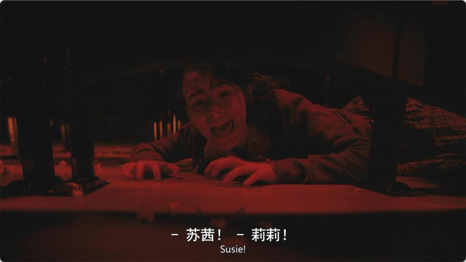罗妮在放映室目睹一切却无能为力,莉莉则吓傻了似的握着被咬断的苏西血淋淋的手臂逃跑。