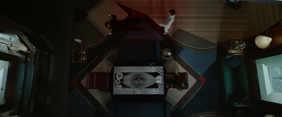 而色调也从冷静的灰色转为深邃的蓝色,医生转动的催眠环也逐渐将记者带入深渊中,逐渐打开自我。