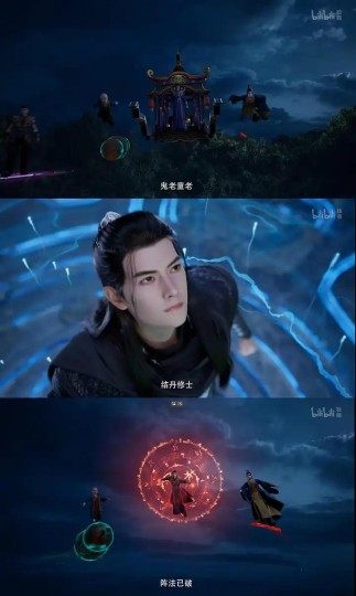动画做出了一点小改编,小说里出现在这里的鬼灵门结丹修士是另外三名出场就发盒饭的碎魂真人弟子,动画则改成了童老鬼老。